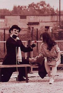 Prezentowane przez Teatr Na Bruku zdarzenie teatralne inspirowane jest twórczością Ch. Chaplina z czasów niemego kina. Stworzona przez genialnego artystę postać trampa – wiecznego tułacza, jest dziś jednym z najpiękniejszych mitów sztuki nie tylko filmowej. Ten mały człowieczek uparcie walczący z przeciwnościami losu, broniący swojej godności, jest dziś dla nas kimś w rodzaju everymana. Widowiskowość, finezja a zarazem prostota narracji, tragikomizm sytuacji, w których znajduje się najczęściej wbrew własnej woli, są zdumiewające.