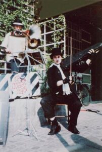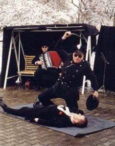 muzyka: ragtimy grane na akordeonie przez Koncertmistrza Sławę lub Człowieka Orkiestrę